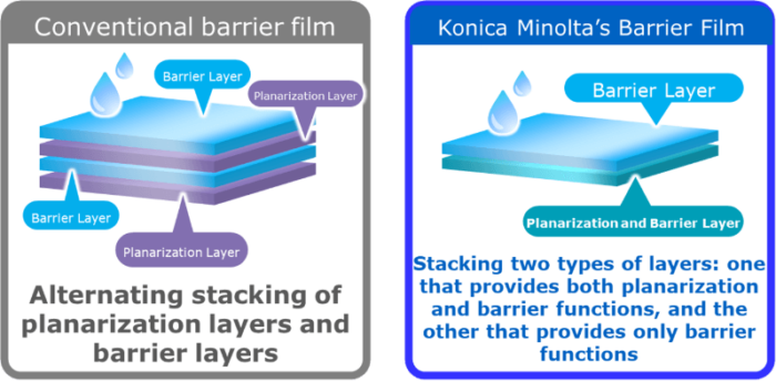 Fig. 1 Conventional Barrier Film vs. Konica Minolta’s Barrier Film
