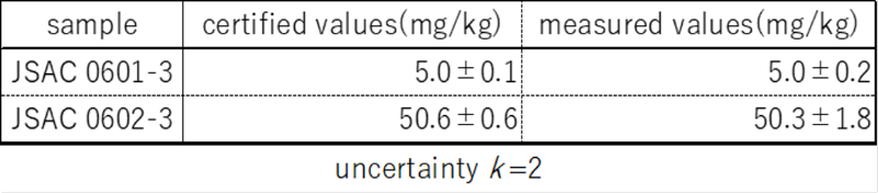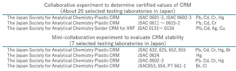 Based on proficiency test performance, The Japan Society for Analytical Chemistry invited us to participate in collaborative experiments, and we have participated seven times, including mini collaborative experiments. We make a significant impact on society through providing consistently highly accurate results (Table 1).